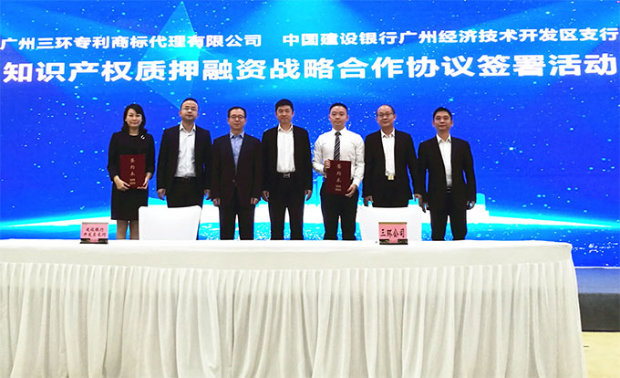 會上,在廣州市知識產(chǎn)權(quán)局協(xié)調(diào)合作處調(diào)研員柯杰兵、廣州開發(fā)區(qū)知識產(chǎn)權(quán)局局長劉石、三環(huán)總經(jīng)理郝傳鑫等相關(guān)嘉賓的見證下,三環(huán)副總經(jīng)理申屠嘉毅、中國建設(shè)銀行廣州經(jīng)濟技術(shù)開發(fā)區(qū)支行副行長周穎梅分別代表雙方簽訂了知識產(chǎn)權(quán)質(zhì)押融資戰(zhàn)略合作協(xié)議。