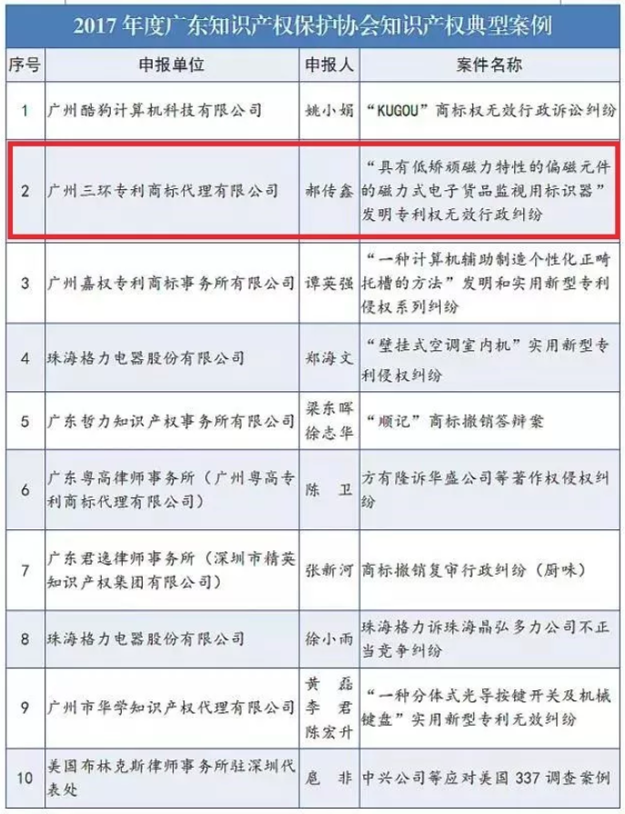 三、入選2017年度廣東知識產權保護協會知識產權典型案例